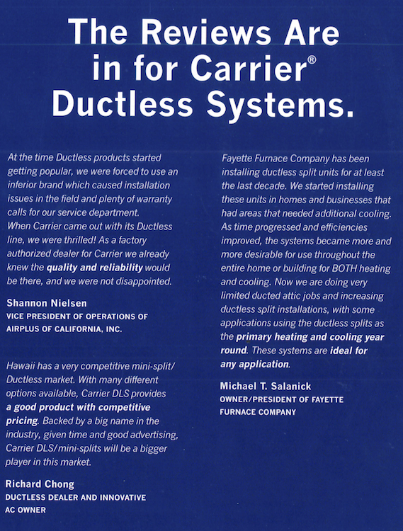 We are a Carrier Factory Authorized Dealer, bringing you the best combination of high quality HVAC products and services. Contact our comfort advisers at (724) 438-5400 to experience the Fayette Furnace difference.